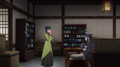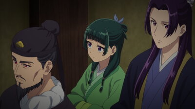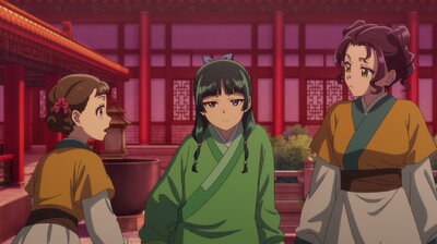 Маомао потрапляє до імператорського двору, де стає служницею. Її глибокі знання медицини дозволяють їй розкрити загадку хвороб молодших дітей імператора, що схожі на прокляття. Вона анонімно допомагає, але її таланти помічає проникливий євнух Джинши. На знак визнання, Маомао отримує статус фрейліни при дворі імператриці Гекуйї.