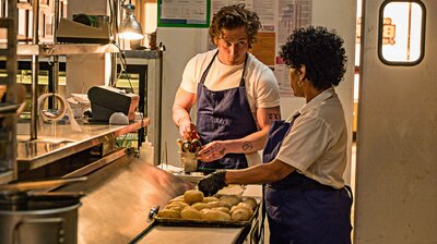 У першому сезоні серіалу "Ведмідь" - у центрі сюжету знаходиться – Кармен Берзатто, зірка кулінарного світу, який отримує нищівну звістку, що його брат Майк, власник дешевої закусочної в Чикаго, покінчив життя самогубством. Зі смаком попелу в роті та важким тягарем на серці Кармен повертається до рідного міста, щоб очолити занедбаний бізнес брата. Закусочна, що дісталася йому у спадок, виявляється справжнім випробуванням – хаотична кухня, буркотливий персонал, гори боргів і меню, що складається з банальних сендвічів. Але Кармен не звик здаватися. Він наймає талановиту і амбітну кухарку Сідні, яка мріє про велику кулінарію, і разом вони розпочинають справжню революцію на кухні. Їхня мета – перетворити цей жалюгідний заклад на місце, де люди зможуть насолодитися справжнім смаком, де кожен сендвіч стане кулінарним шедевром. Але шлях до успіху непростий, оскільки героям доведеться зіткнутися з нерозумінням персоналу, скептицизмом клієнтів та власними демонами. Окрім того, головний герой бореться не лише за успіх бізнесу, але й за збереження пам'яті про брата, намагаючись зрозуміти його вчинок та знайти відповіді на запитання, що мучать його душу. Ведмідь 1 сезон — всі серії вашого улюбленого онлайн серіалу доступні українською мовою та з українськими субтитрами, абсолютно безкоштовно та у високій hd якості!